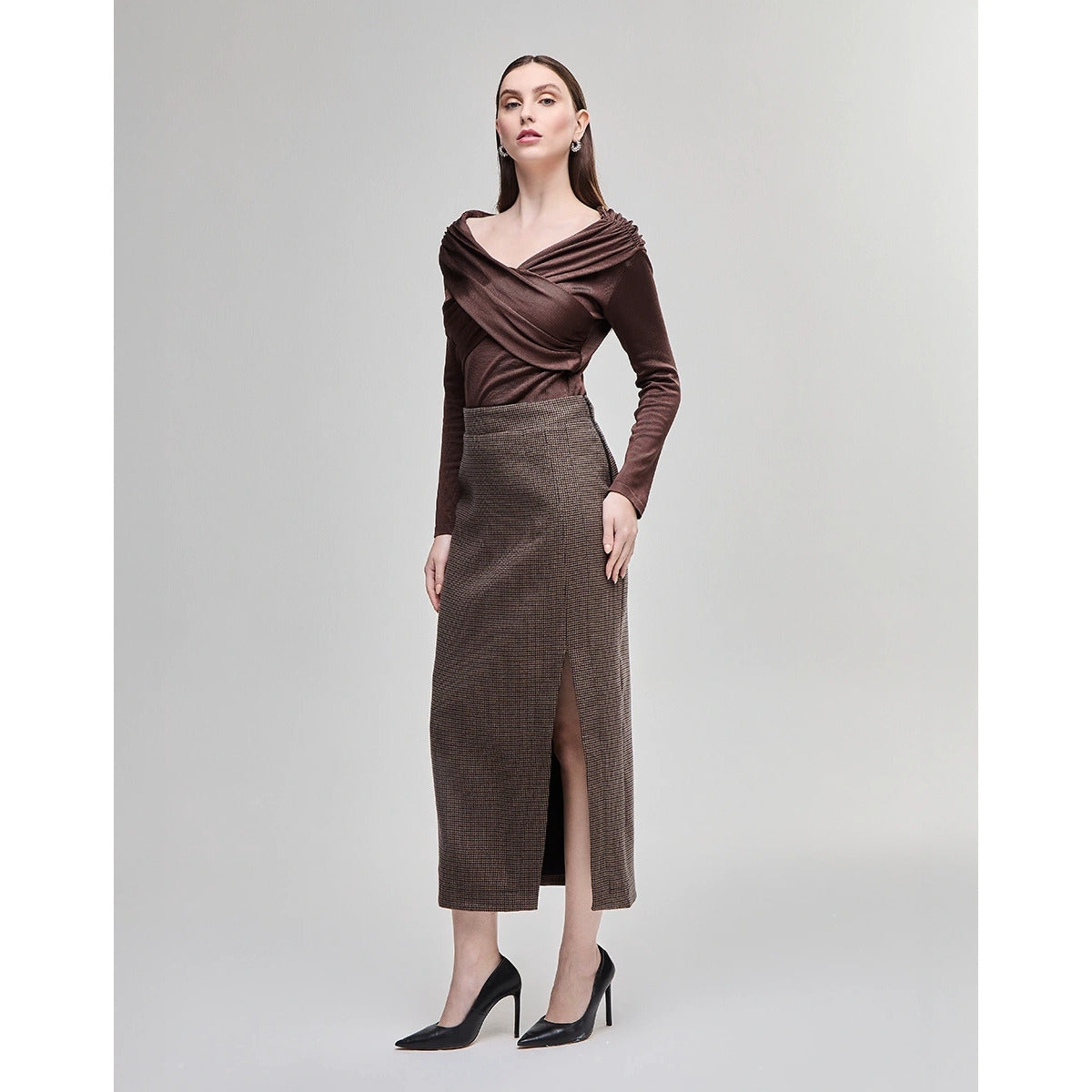 Blusa Ombro a Ombro Trico Marrom Nobuck
