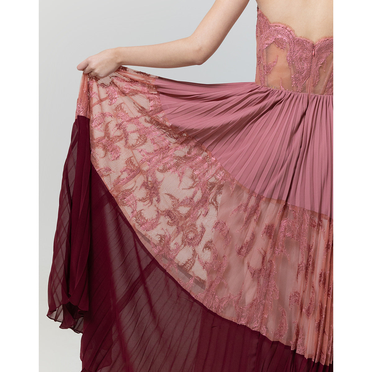 Vestido Corselet com Saia Plissada Renda I Elisa Lima